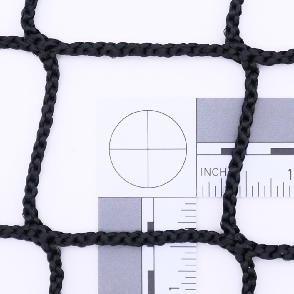 #40 X 2” nylon netting is prepared to custom net sizing and dimensions using the Online Netting Calculator above. This netting is prepared with a square mesh pattern, and has 2 options of bordering installed around the perimeter edge meshes, which are a 5/16” braided polyester rope sewn-in or a 1-1/2” black poly webbing border with brass grommets stamped every foot. 210D/120 nylon netting features high tensile strengths, high abrasion resistance, and excellent ease-of-use. This nylon netting is well suited for both outdoor and indoor installations, as it is completely prepared for UV and moisture exposure.