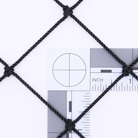 #21 X 1-3/4” nylon netting is prepared to custom net sizing and dimensions using the Online Netting Calculator above. This netting can be prepared with a diamond mesh or square mesh pattern, and has the option of having a 5/16” braided polyester rope bordering installed around the perimeter edge meshes. DuPont 66-728 nylon netting features high tensile strengths, high abrasion resistance, and excellent ease-of-use. This nylon netting is well suited for both outdoor and indoor installations, as it is completely prepared for UV and moisture exposure.