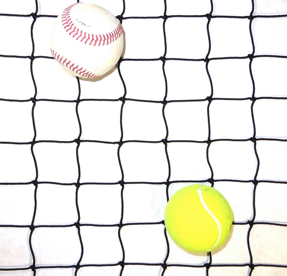 1-3/4” mesh netting is recommended for baseball and softball backstop nets, and we supply that mesh in a range of twine thicknesses. All are constructed from 100% Made in USA DuPont® type 66-728 twisted-knotted nylon.